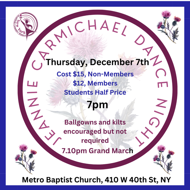 The RSCDS is holding a Scottish Country Dance Social on Sunday, December 8th, from 3:00 - 5:30 pm. We hope you’ll join us in Brooklyn for winter-themed dances!